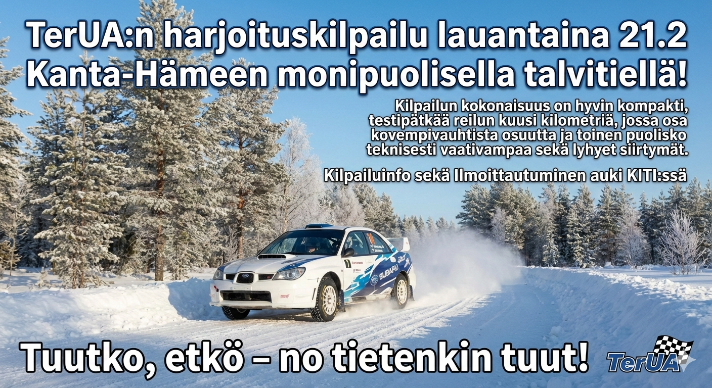 TerUA järjestää harjoituskilpailun lauantaina 21.2. Lähetetty 28.1.2026 by J.Kaapa Jaa tämä: Jaa Facebookissa(Avautuu uudessa ikkunassa) Facebook Tykkää tästä:Tykkää Lataa...